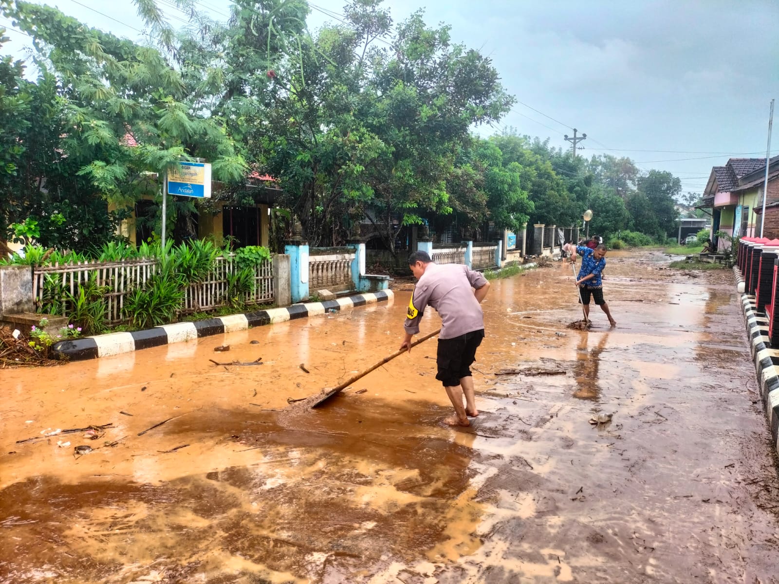“Saat ini banjir sudah surut, namun meninggalkan endapan lumpur yang cukup tebal di jalan,” ujarnya.