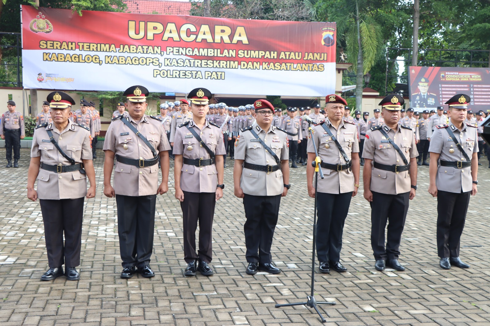 Pati – Jawa Tengah , Globalnet.asia | Bertempat di lapangan depan Mapolresta Pati, pada Selasa, 18/02/2025 pukul 07.00 WIB telah dilaksanakan upacara serah terima jabatan dan pengambilan sumpah atau janji Kabagops, Kabaglog, Kasatreskrim, dan Kasatlantas Polresta Pati. Upacara ini dipimpin oleh Kapolresta Pati, Komisaris Besar Polisi Andhika Bayu Adhittama, dan dihadiri oleh seluruh jajaran pejabat dan personel Polresta Pati.