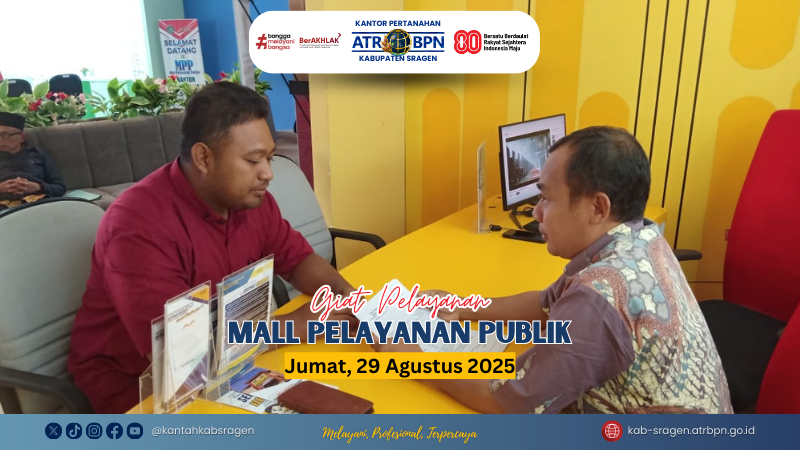 Dengan menjadikan MPP sebagai pusat layanan terpadu, Kantor Pertanahan Kabupaten Sragen memfasilitasi masyarakat yang membutuhkan informasi seputar proses pengurusan sertipikat tanah, penetapan batas bidang, hingga berbagai persoalan terkait hak atas tanah lainnya.