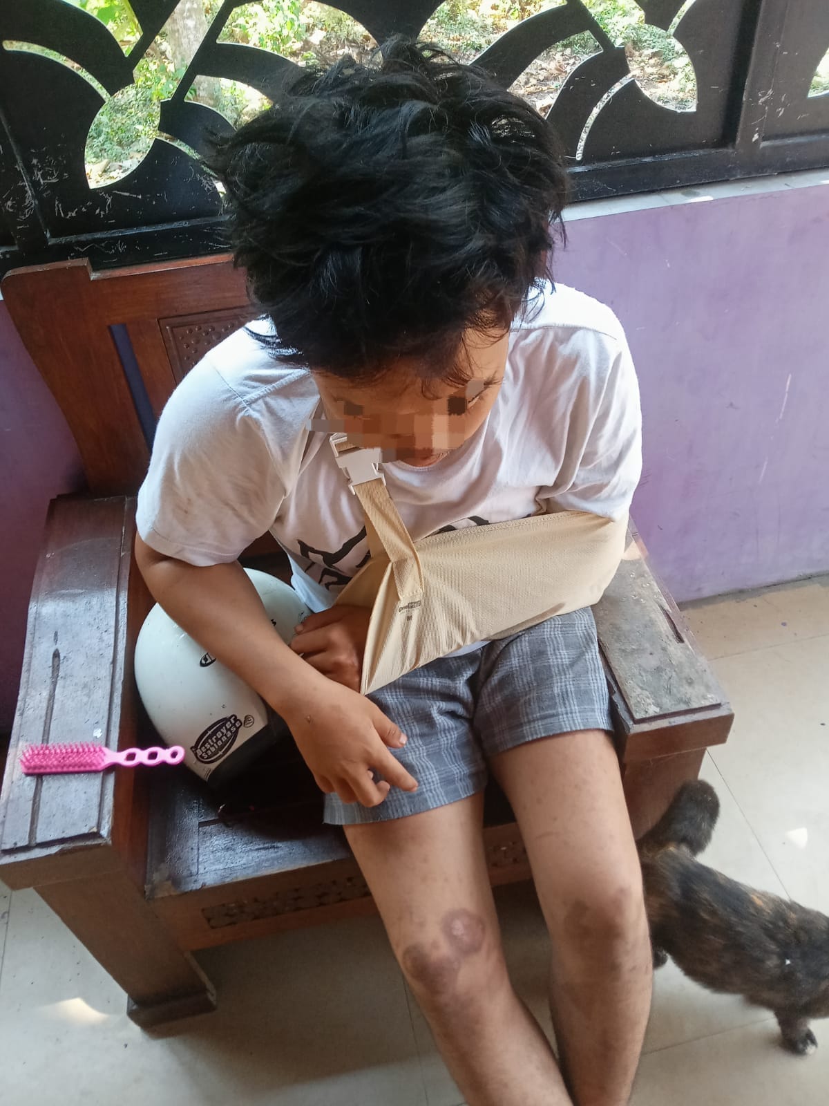 Akibat kejadian tersebut, AF mengalami luka lebam pada tangan hingga tidak bisa digerakkan.