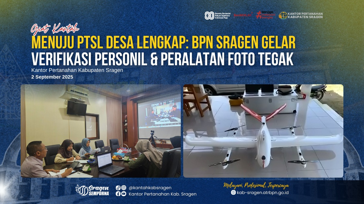 Kantor Pertanahan Kabupaten Sragen menyatakan komitmennya untuk terus meningkatkan kinerja, sejalan dengan visi Kementerian ATR/BPN dalam mewujudkan pelayanan pertanahan yang Melayani, Profesional, dan Terpercaya.