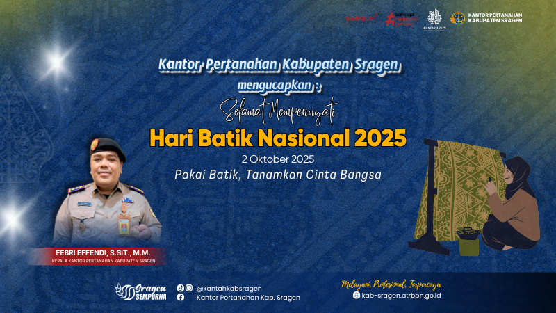 Kepala Kantor Pertanahan Kabupaten Sragen Febri Effendi, S.SiT., M.M. beserta jajaran mengucapkan :