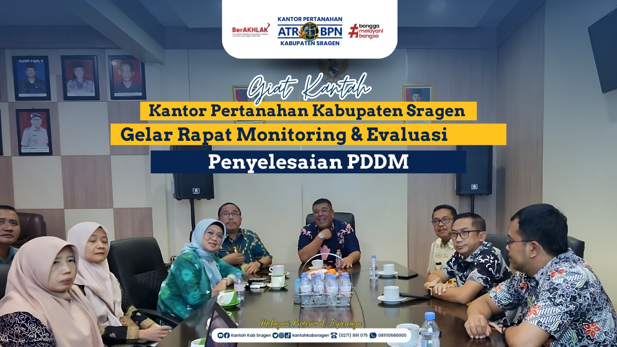 Kegiatan tersebut diikuti oleh para kepala seksi serta pejabat fungsional di lingkungan Kantor Pertanahan Sragen. Dalam arahannya, Febri menekankan pentingnya percepatan dan ketepatan penyelesaian PDDM sebagai bagian dari komitmen terhadap peningkatan kualitas pelayanan pertanahan kepada masyarakat.