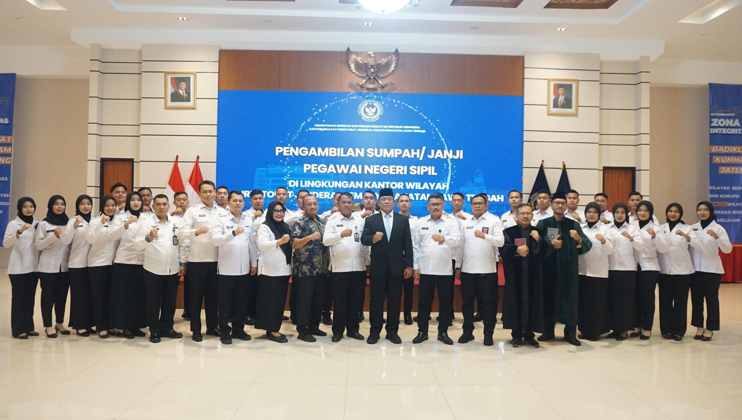 Bertempat di Aula Yasonna H Laoly, Balai Pendidikan dan Pelatihan Hukum Jawa Tengah, acara diawali dengan menyanyikan Lagu Indonesia Raya dilanjutkan dengan pembacaan Surat Keputusan Pengangkatan Pegawai Negeri Sipil.