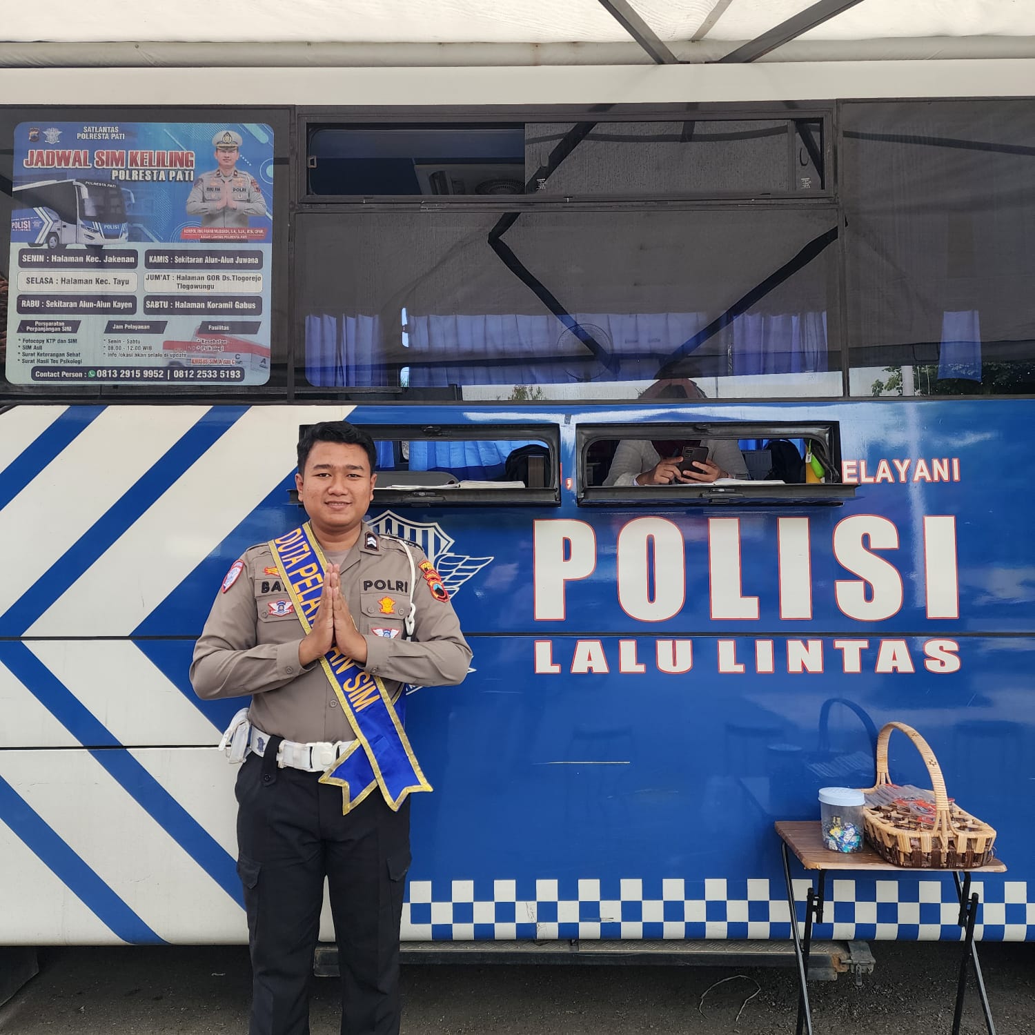 Kasatlantas Polresta Pati, Kompol Riki Fahmi Mubarok, SIK., SH., M.Si., CPHR. melalui Kasubnit 2 Unit Regident Aipda Heri Prayitno,SH menyampaikan, bahwa pelayanan kepolisian Polantas Polresta Pati dalam pelayanan Bus SIM keliling berjalan kondusif dan terkendali. Petugas pelayanan Bus SIM keliling mengerti dengan tugas dan tanggung jawabnya dalam memberikan pelayanan terbaik kepada masyarakat yang melakukan perpanjangan SIM A dan C. Pelayanan dilakukan oleh petugas Satpas dengan humanis.” Ucap Kasatlantas kepada Heri Kasubnit 2 Regident.