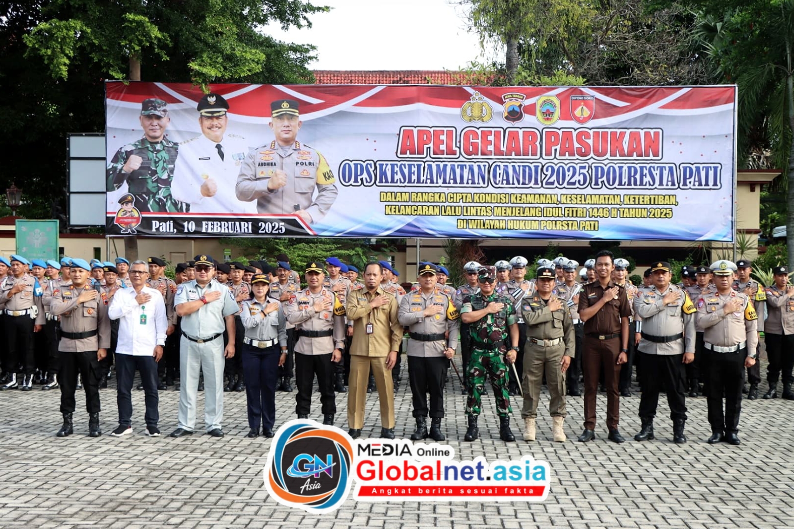 Pati – Jawa Tengah,Globalnet.asia | Polresta Pati melaksanakan apel gelar pasukan Operasi Keselamatan Candi 2025 pada Senin (10/02/2025) pukul 07.00 WIB di halaman depan Mapolresta Pati. Kegiatan ini bertujuan untuk meningkatkan kesadaran masyarakat dalam berlalu lintas serta mengurangi angka kecelakaan dan fatalitas di jalan raya.