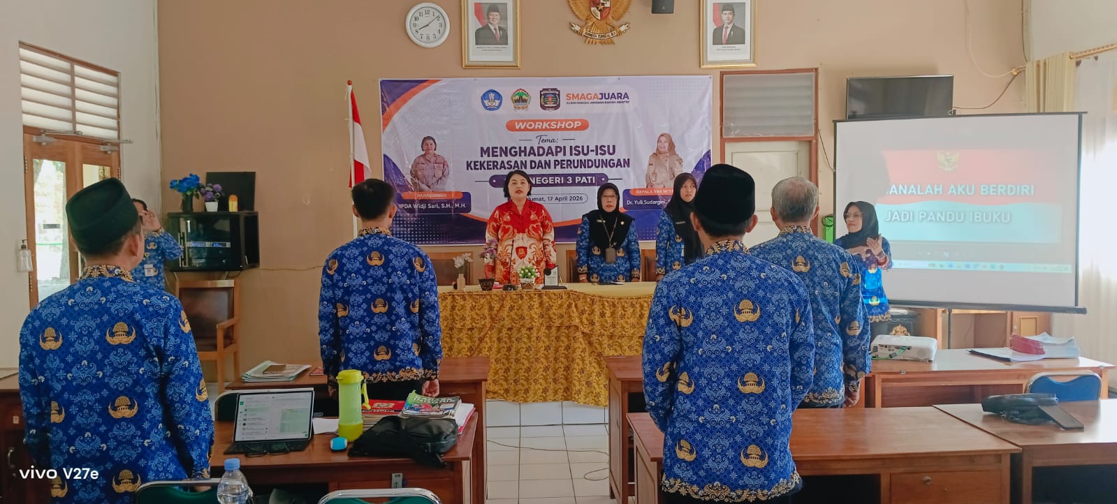 Kegiatan yang berlangsung di ruang guru tersebut diikuti oleh Wakil Kepala Sekolah bersama 114 guru dan staf pengajar. Hadir sebagai narasumber, Ps. Kasi Hukum Polresta Pati IPDA Wiji Sari, S.H., M.H., didampingi Ps. Kasubsi Luhkum AIPTU Yayuk Supriyati, S.H.