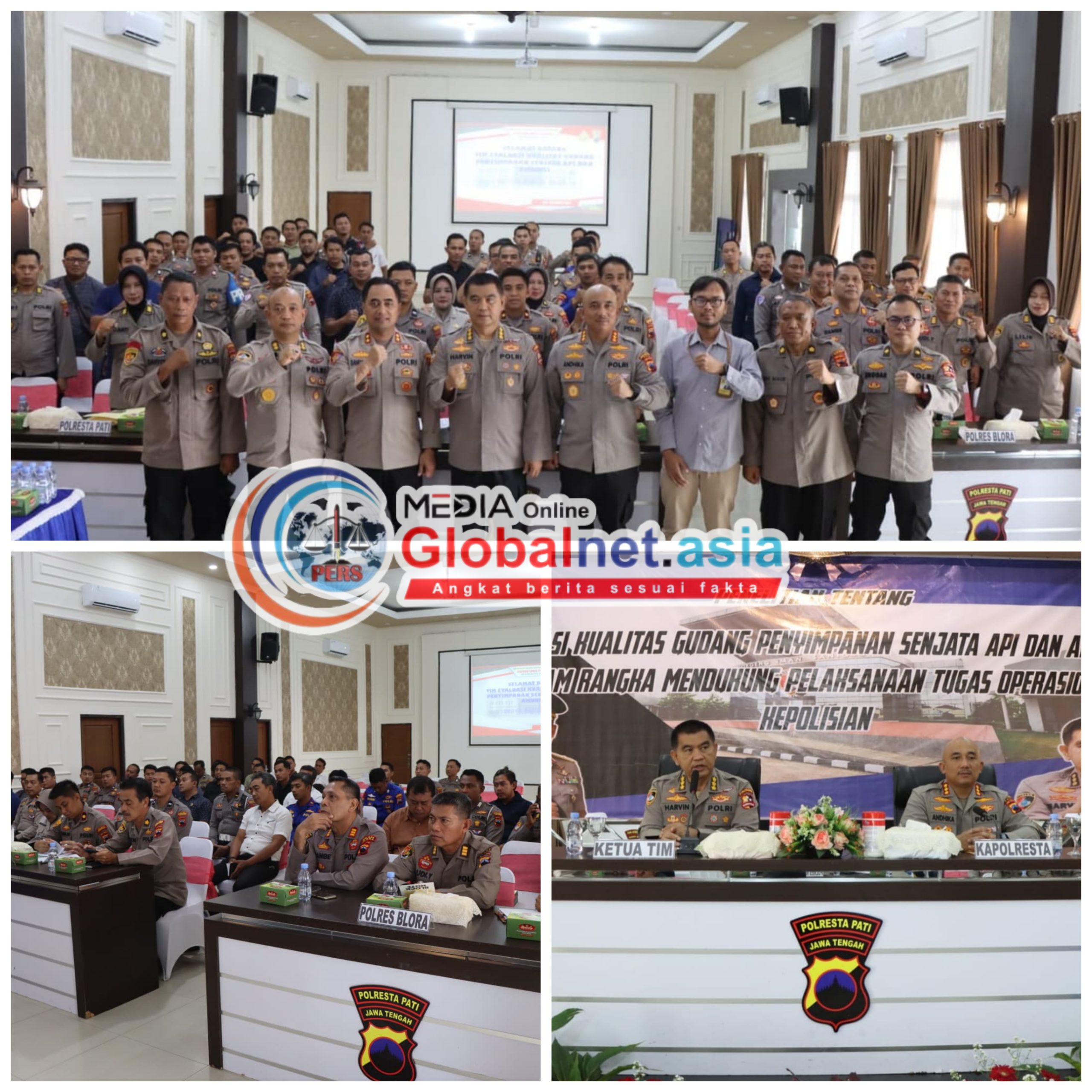 Pati, Jawa Tengah – Globalnet.asia| Tim Pusat Penelitian dan Pengembangan (Puslitbang) Polri melakukan kunjungan ke Polresta Pati untuk mengevaluasi kualitas gudang penyimpanan senjata api dan amunisi, Selasa (04/02/2025). Kunjungan ini bertujuan untuk memastikan keamanan dan kelayakan penyimpanan senjata api, serta mencegah insiden penyalahgunaan atau kecelakaan.