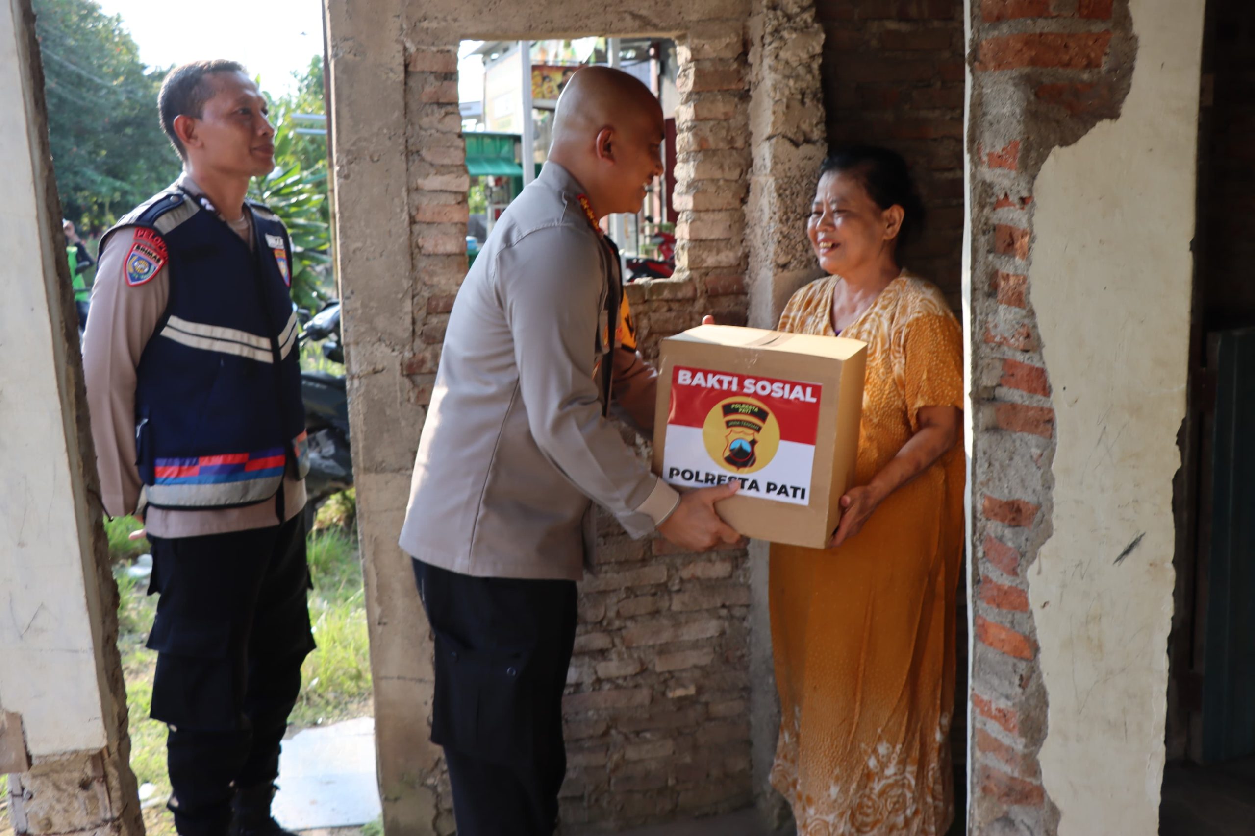 Dalam kegiatan tersebut, Kapolresta Pati memberikan bingkisan paket sembako dan tali asih kepada 10 warga Desa Sidokerto yang membutuhkan diantara nya Bapak Markam (76), Ibu Saridah (58), Ibu Remi (64), Ibu Ngateni (68), Ibu Kasmonah (77), Ibu Damisih (72), Bapak Trimo (52), Bapak Warno (51), Bapak Rabiyo (80), Ibu Suparmi (72).
