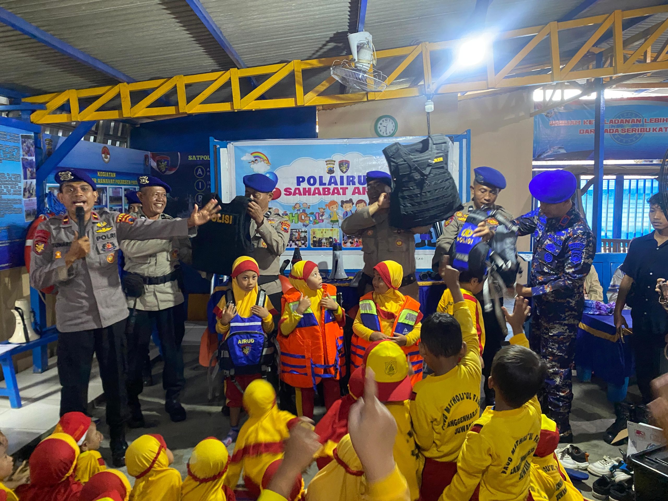Dalam kegiatan tersebut, para siswa diperkenalkan dengan berbagai peralatan khusus yang digunakan Satpolairud, mulai dari peralatan selam, life jacket, ring buoy, teropong, perahu karet, kendaraan bermotor air (AWC), hingga kapal patroli IX-1024. Seluruh materi disampaikan dengan bahasa sederhana agar mudah dipahami anak-anak.