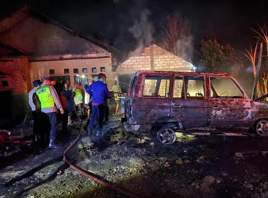 “Mobil tersebut terbakar, kemudian terjadi ledakan mengakibatkan terbakarnya dinding kayu ukir yang terletak berdekatan dengan kbm kijang itu, lalu dinding kayunya terbakar dan merambat ke rumah milik korban,” terang Sugiono.