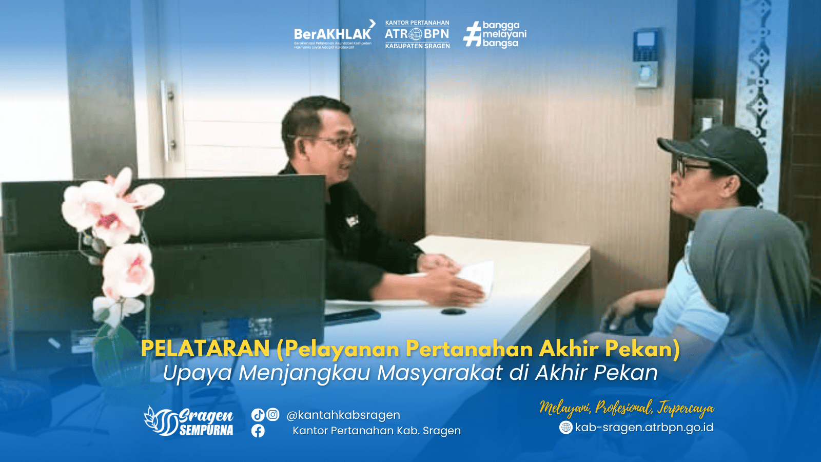 Sragen – Semangat bulan suci Ramadan tidak menyurutkan komitmen pelayanan publik. Di tengah suasana penuh keberkahan, Kantor Pertanahan Kabupaten Sragen tetap konsisten menghadirkan Pelayanan Pertanahan Akhir Pekan (PELATARAN) sebagai wujud nyata pengabdian kepada masyarakat.