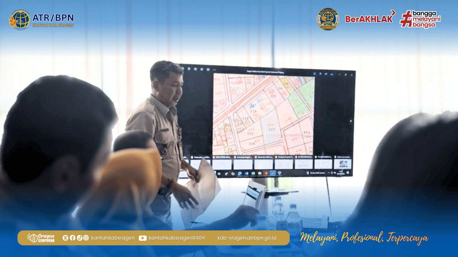 Kantor Pertanahan Kabupaten Sragen terus berkomitmen untuk mendukung setiap kebijakan yang berkaitan dengan pengelolaan aset pertanahan, melalui penyediaan data yang akurat, pelayanan yang profesional, serta koordinasi yang intensif dengan berbagai pihak terkait.