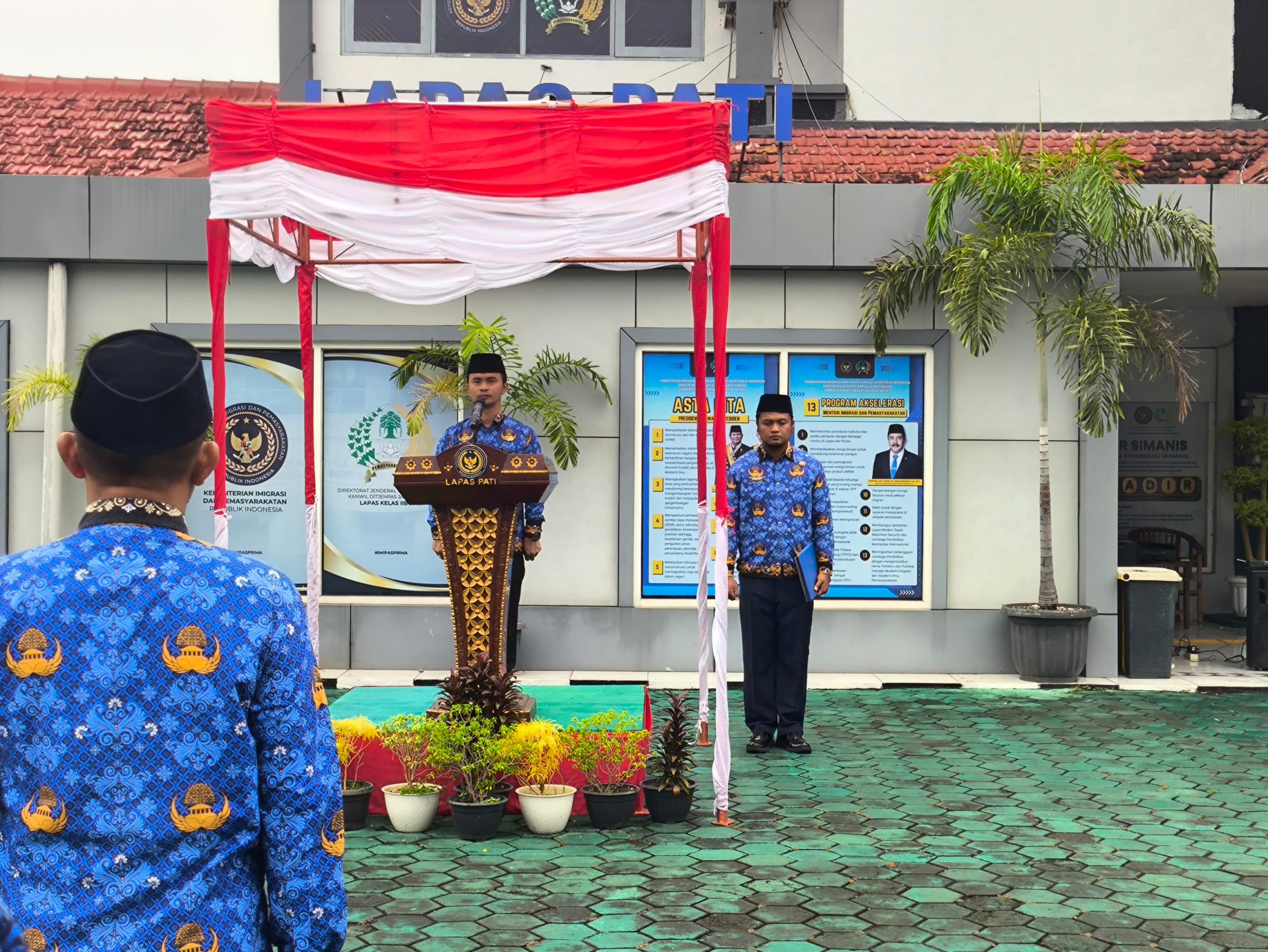 Kegiatan upacara HUT KORPRI ke-54 di Lapas Kelas IIB Pati berlangsung tertib dan penuh makna, diakhiri dengan doa bersama dan ditutup dengan sesi foto bersama seluruh pegawai dan peserta magang sebagai simbol kebersamaan serta komitmen untuk terus meningkatkan pelayanan publik dalam menjalankan tugas pembinaan pemasyarakatan.